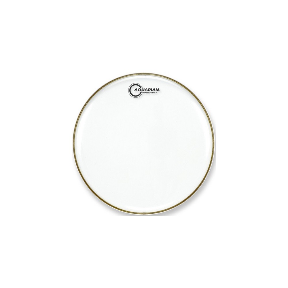 CLASSIC CLEAR 20″ – Pelle per grancassa 20″ – Serie Classic Clear – Se utilizzata come battente ha un suono profondo ed aperto con tanto attacco e sustain – Se utilizzata come risonante ha un suono caldo e pulito – Spesso viene sottovalutata l’importanza delle pelli risonanti, questa è una pelle risonante ideale per qualunque batteria – Dotata dell’esclusivo cerchio con sistema di bloccaggio sicuro “Safe-T-Lock” che elimina la possibilità di slittamento della pelle che provocherebbe la perdita dell’accordatura – Dotata dell’esclusivo collare Aquarian “Sound Curve” grazie al quale l’estremita` del fusto trova il suo alloggio naturale nella curva della pelle senza alcuna increspatura, neanche in caso di estremo serraggio dei tiranti in fase di accordatura – Singolo strato 10mil – Finitura: lucida – Colore: trasparente.