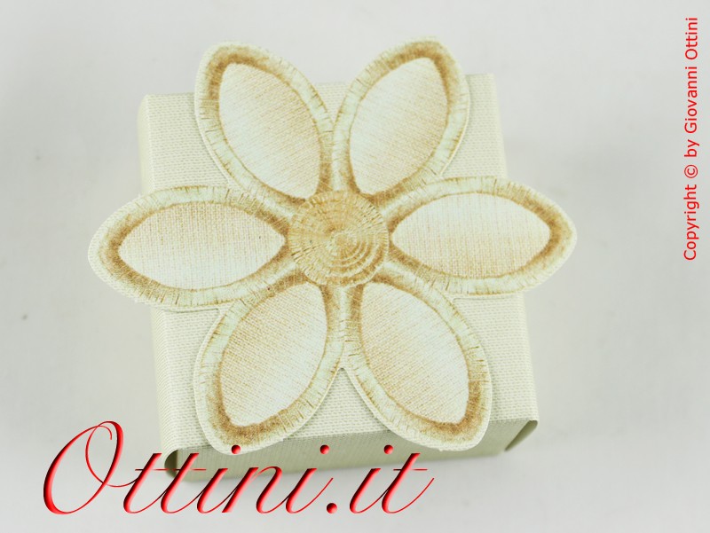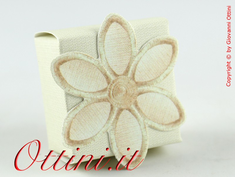 Mini Astuccio portaconfetti della nuova serie Fiore destinato a qualsiasi ricorrenza. Prodotto in due versioni, questa è la più piccola (la grande è anche disponibile nel nostro campionario). Può ospitare qualsiasi tipo di confetto, compresi i cioccolato e mandorla insieme. Il montaggio è ultrasemplice e intuitivo.