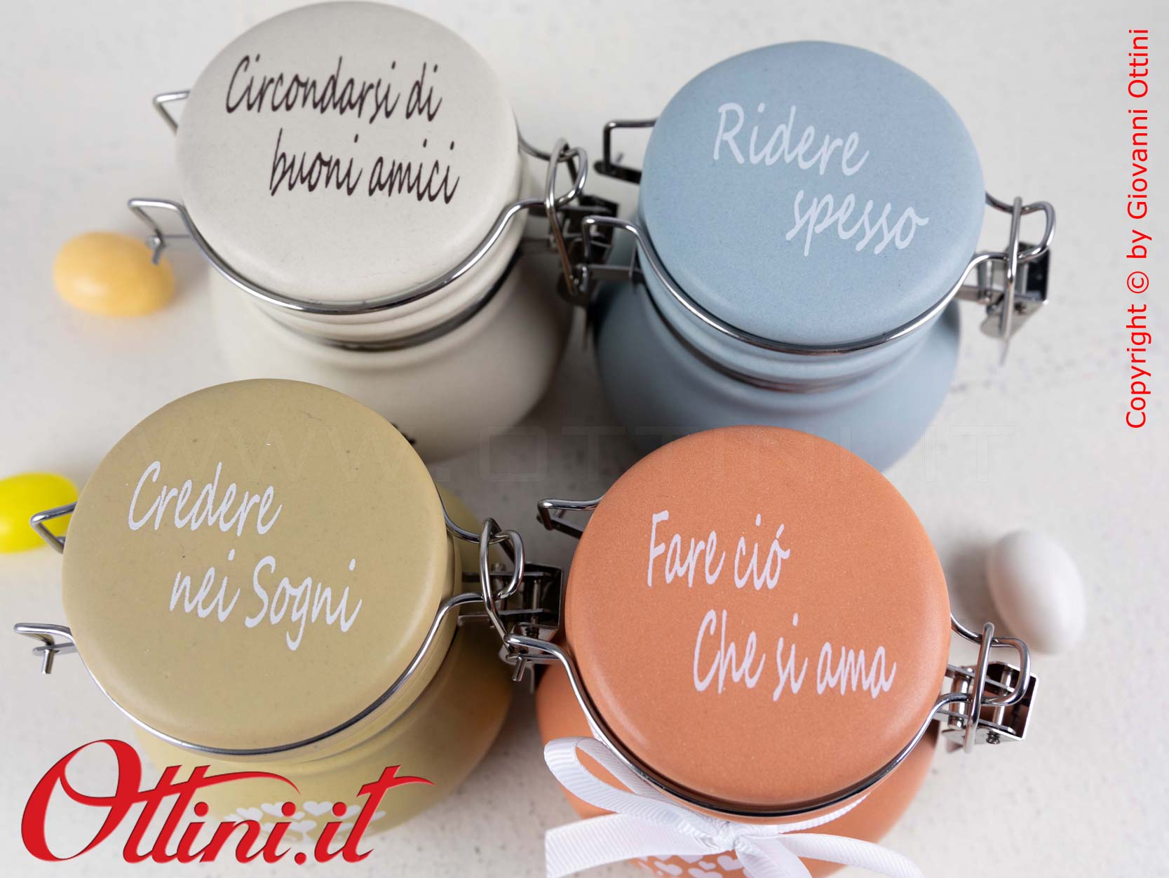 Le frasi scritte sui barattoli sono quelle di auspicio per vivere veramente bene: