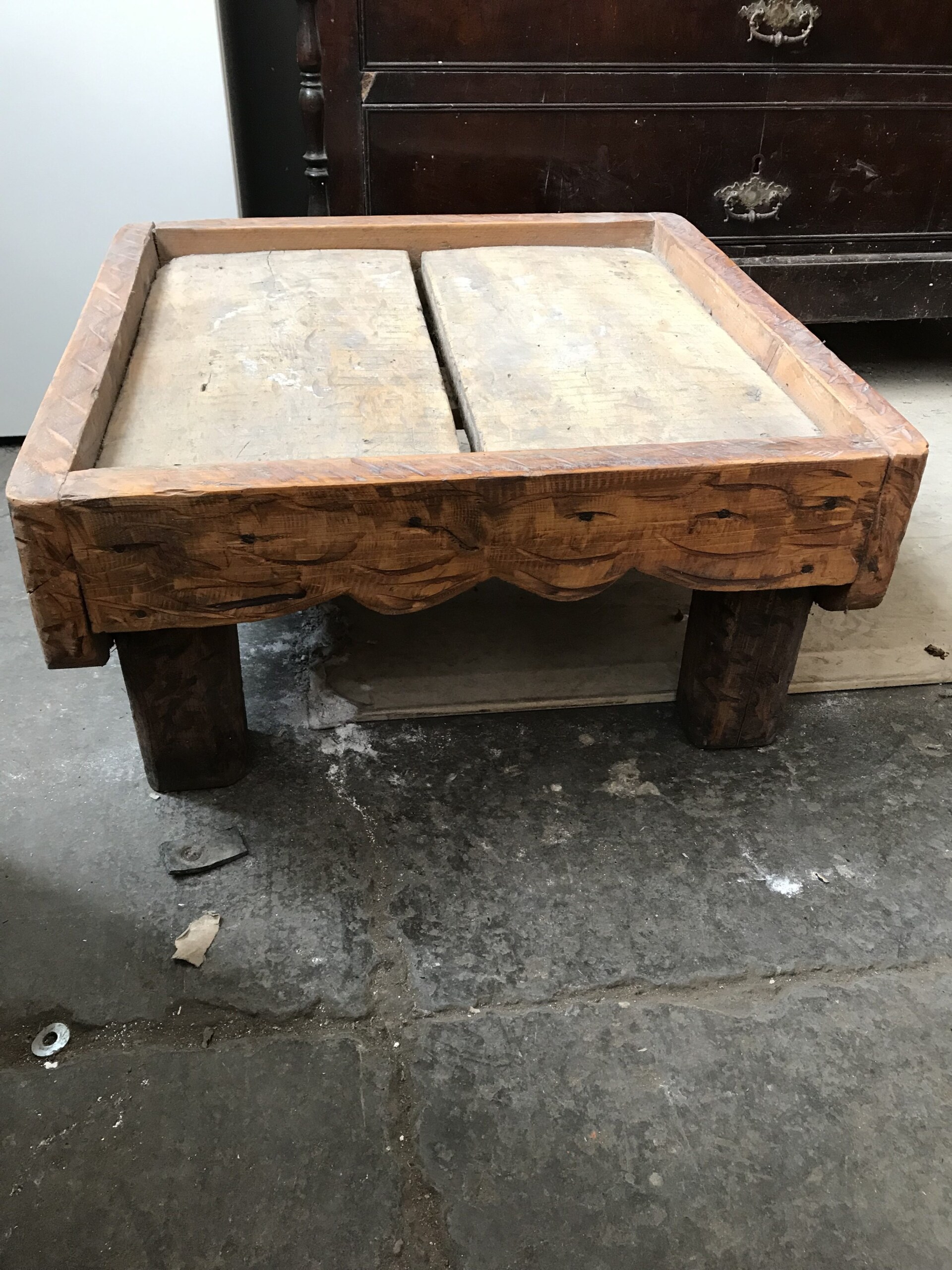 Base in legno quadrata molto particolare, lavorazione artigianale, utilissima come portavaso, porta statua…
