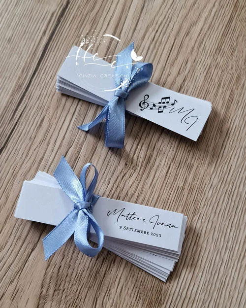 Materiale e misure del bigliettino bomboniera matrimonio tema musica