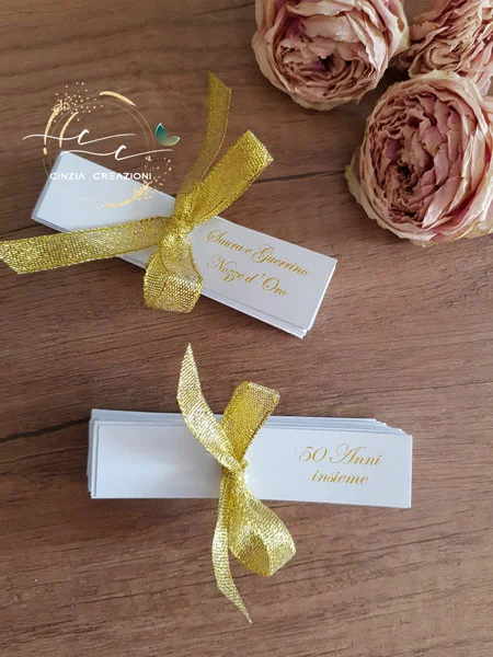 Materiale e misure del bigliettino bomboniera nozze d’oro