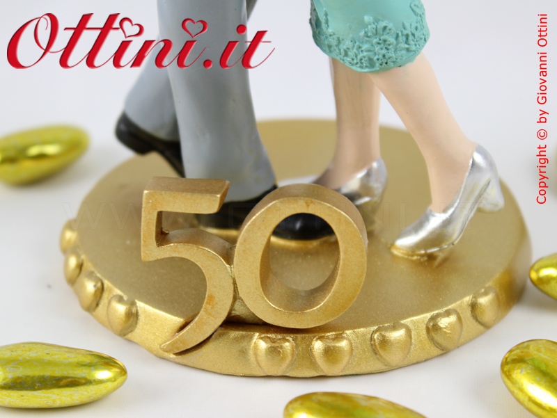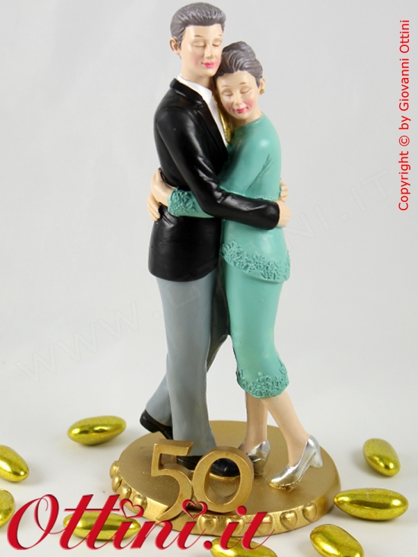 Coppia innamorati per anniversario nozze d’oro. E’ un evento unico, un traguardo straordinario di unione e d’amore che sarà festeggiato con la stesa intensità e passione con cui è stato vissuto. Realizzati in resina finemente decorata ha una base ampia (diametro cm 9,5) e stabile.