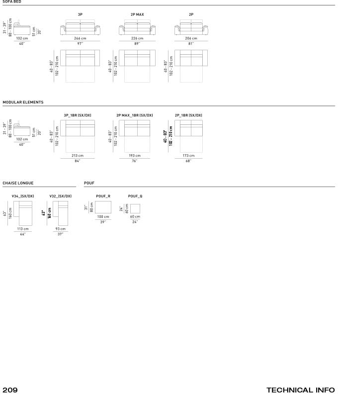 Disponibile nelle versioni tradizionali lineari o con aggiunta di chaise longue.