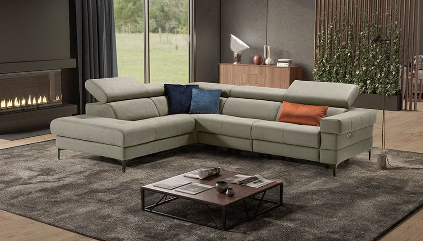 Il divano relax componibile Bozzolo offre un perfetto connubio tra eleganza e comfort, con un design moderno e modulare che si adatta facilmente a qualsiasi spazio. Dotato di meccanismi reclinabili, permette di personalizzare il relax in ogni seduta, garantendo il massimo del comfort.