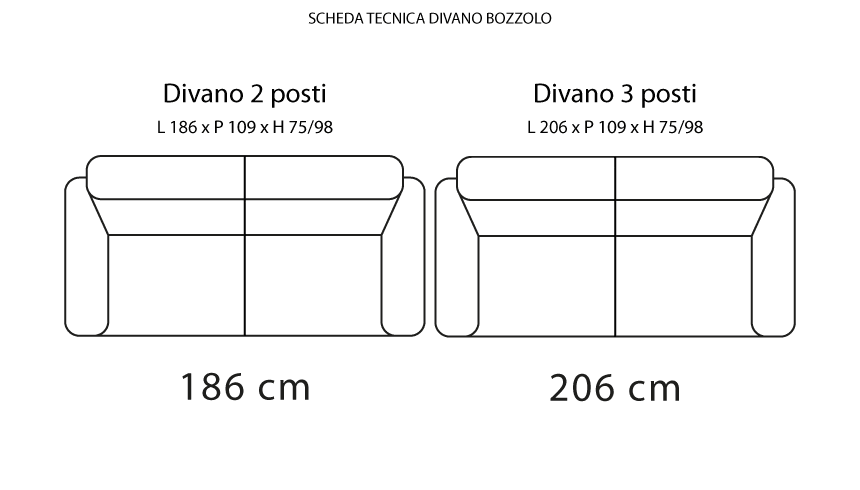 2 posti: L 186 cm x P 109 cm x H 75/98 cm