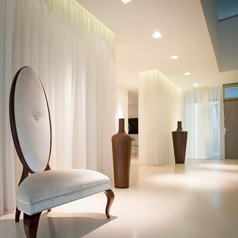 Una soluzione pratica e funzionale per dare vita ad illuminazioni armoniose sia in ambito domestico che commerciale. Il faretto a incasso in alluminio Lena ha una forma quadrata di 8 cm per lato. La sorgente luminosa è rientrata rispetto alla superficie, aggiungendo la suggestione della luce che viene profusa dall’interno della struttura in cartongesso.