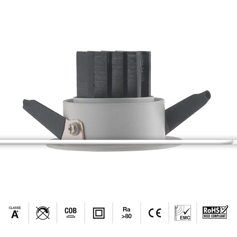 Il faretto da incasso è disponibile nella variante Silver goffrato e Bianco goffrato entrambi con luce 4000k. Il driver ă incluso.