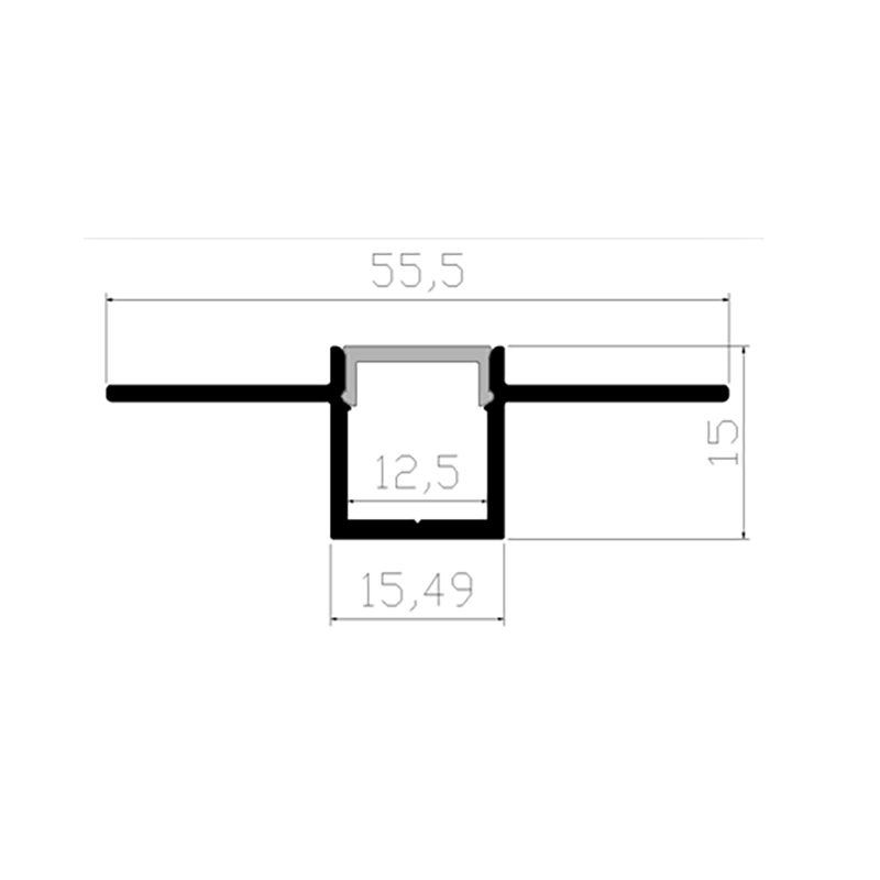 • Dimensioni profilo: 2 metri di lunghezza x 15 mm di altezza (10mm sotto e 3mm sopra le alette) x 55 mm di larghezza