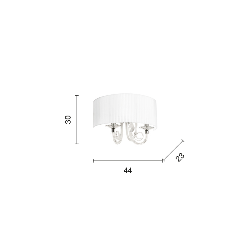 Collezione con braccetti in cristallo e paralume in organza bianca.