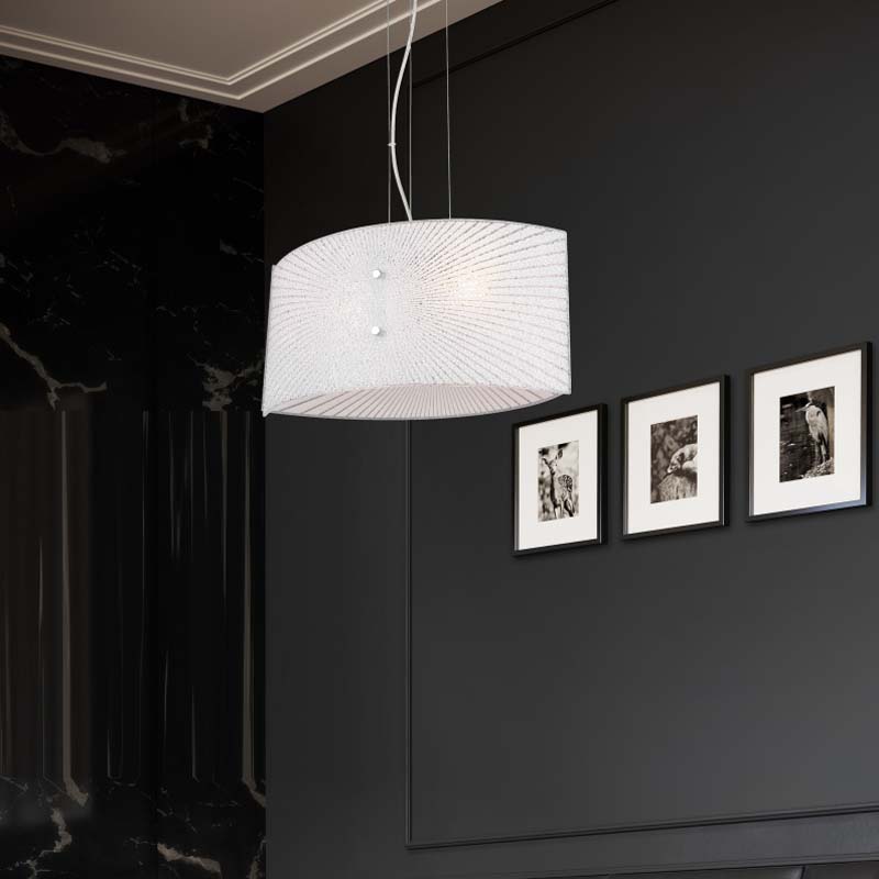Lampadario led classico Elisa. Questo elemento per l’illuminazione presenta un diffusore in vetro decorato e satinato, che contribuisce a proiettare la luce in maniera chiara e uniforme.
