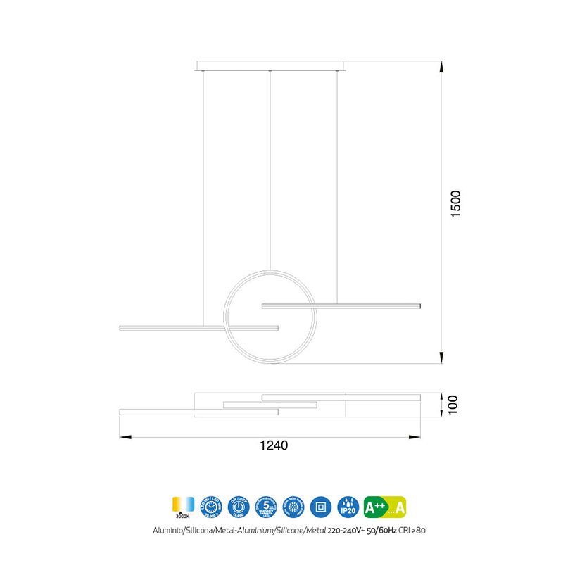 - Materiale: struttura in alluminio, rosone in metallo e copertura led in silicone