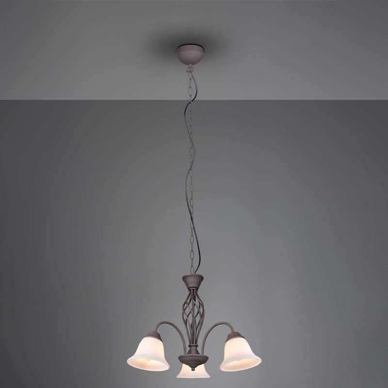 Lampadario led classico Rustica, con struttura in metallo e diffusori in vetro bianco satinato. Questa lampada led a soffitto è realizzato in chiaro stile tradizionale, proponendo un concept semplice, in grado di donare calore e familiarità agli ambienti.