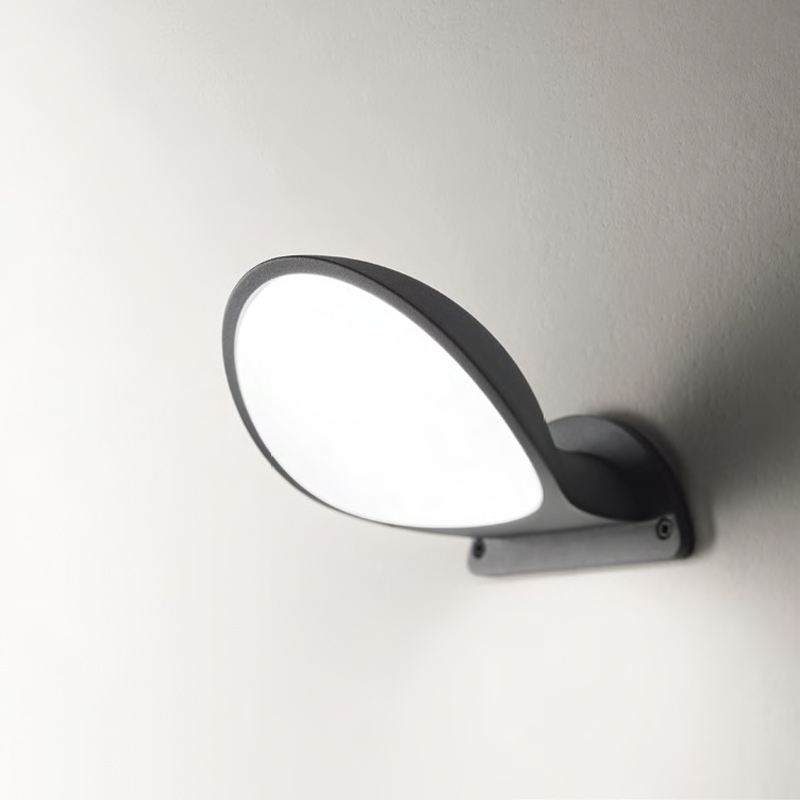 Lampada da parete led Iris, realizzata da Gea Led. Un’interessante soluzione offerta da questa lampada led da esterno, che grazie alla forma peculiare del diffusore garantisce un’illuminazione più completa della zona.