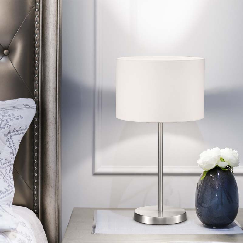 Lampada da tavolo Led Hotel, paralume tessuto, struttura in metallo