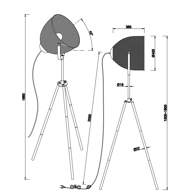 Piantana Led con grande cupola in rete di metallo. Altezza minima 150cm