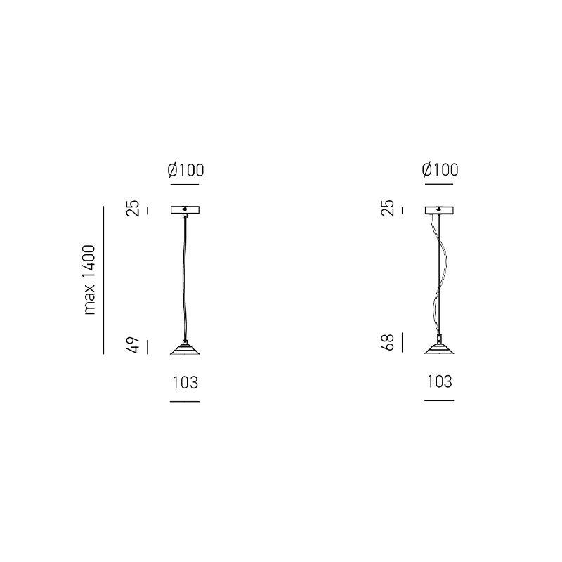 - Montatura in metallo senza rosone dotata di cavo elettrico di lunghezza 3 metri.