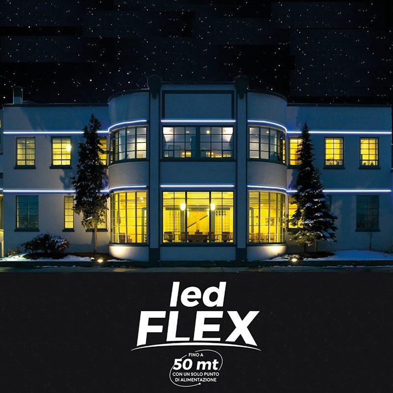 La Striscia Led Flex flessibile con marchio Ledco è ideata appositamente per l’illuminazione lineare da esterno. Pratica e flessibile, la nuova Strip Led Flex è facile da assemblare e permette di realizzare effetti di illuminazione lineare da esterno mai ottenuti prima. Grazie ai suoi 120 led al metro, è in grado di creare delle linee di luce continue ed uniformi. La sua flessibilità consente di utilizzarla nella realizzazione di scritte o disegni per le insegne di attività commerciali, quali negozi o ristoranti. Tra i suoi punti di forza, possiamo menzionare l’elevata resistenza. Realizzata e rivestita in PVC termodissipante, viene stabilizzata ai raggi UV, per resistere al degrado dovuto a fattori atmosferici. E’ dotata di un elevato grado di protezione, corrispondente ad IP65. Questo particolare modello di striscia è autodissipante, in grado cioè di evitare il ristagno di calore, che ne accorcerebbe la durata di vita, e viene venduto al metro. L’intera bobina è da 50 metri. E’ possibile creare un’unica illuminazione continua fino a 50 metri. L’alimentazione è a 220V, ed il connettore stagno è incluso nella confezione. Nella confezione è presente anche il tappo di chiusura. Con il raddrizzatore è possibile alimentare fino a 50 metri di flex led. La striscia viene fornita già cablata e completa di tappo per ogni metratura e dimensione richiesta e desiderata (sempre ed esclusivamente al metro). Per ogni spezzone o linea creata occorrerà acquistare un nuovo tappo ed un nuovo alimentatore. Può essere fissata ed installata con l’ausilio di staffe o profilo ordinabili separatamente. L’alimentatore non è incluso, e può essere acquistato sempre dal nostro sito. Questa striscia led flessibile sviluppa una potenza di 8,5 W/m. E’ disponibile nella varianti di colore di luce Bianco Caldo 3000K 700 Lumen, Luce Bianco Naturale 4000K 720 Lumen e Luce Bianco Freddo 6000K 750 Lumen. Il fascio luminoso è di 120°. Le dimensioni sono le seguenti: 1 metro (bobina fino a 5 metri) x 16 mm x 10 mm. Prodotto garantito per 2 anni. Prodotto con Cetrificazione CE ROHS. I tempi di spedizione sono molto brevi, 2 giorni lavorativi, esclusi sabato, domenica e festivi.