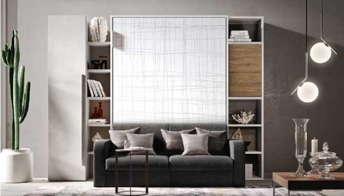 Letto a scomparsa con librerie e divano Aosta personalizzabile