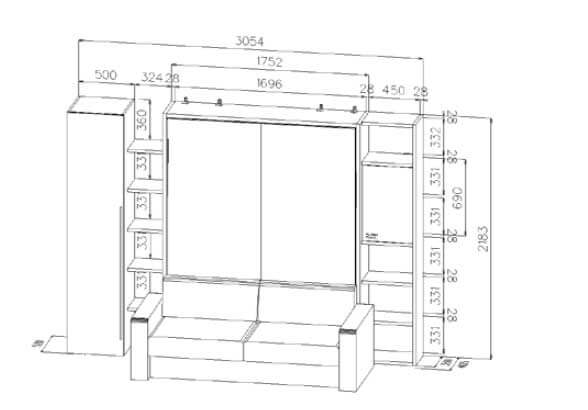 Scheda Tecnica del Letto A Scomparsa con Librerie e Divano