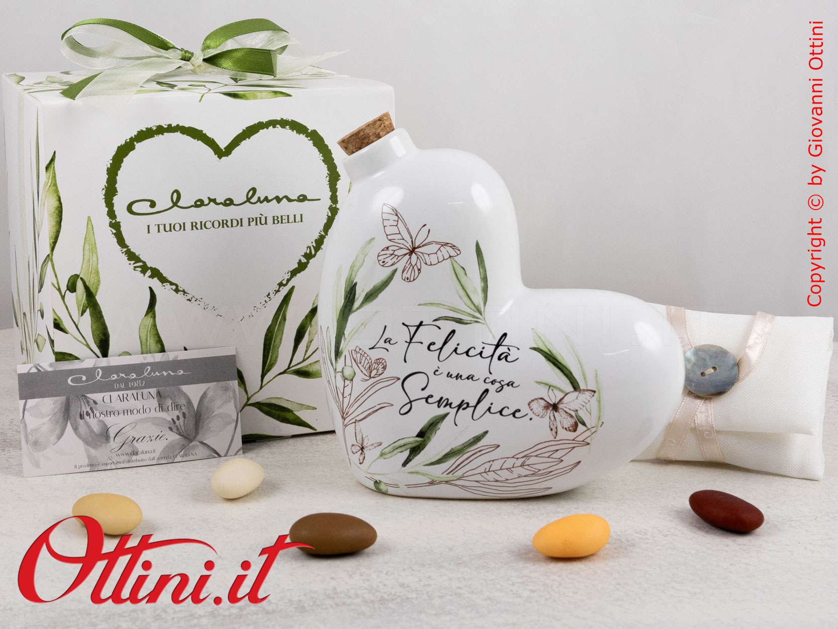 Con un ordinativo minimo di 50 pz dell’Oliera Grande Cuore (o di bomboniere miste Claraluna abbinate alla promozione), potrete accedere alla campagna promozionale che vi permette di avere le PARTECIPAZIONI di Claraluna IN OMAGGIO, comprensive di servizio stampa!!! Potrete scegliere tra ben 6 modelli bellissimi! Per le condizioni e le modalità FATE CLICK QUI.