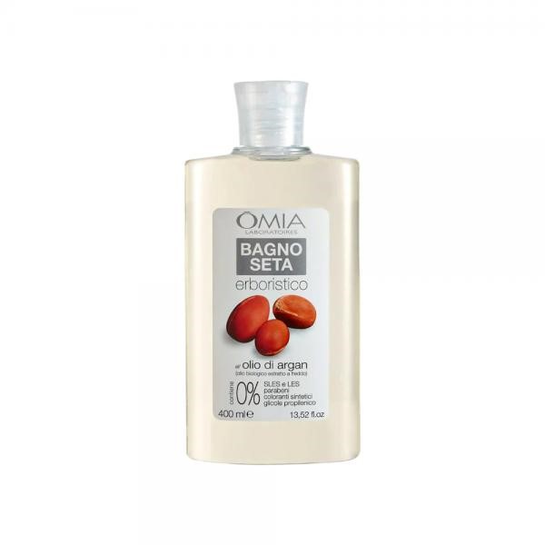 OMIA BAGNO SETA ALL’OLIO DI ARGAN 400 ML Omia Bagno Seta Erboristico è arricchito con Olio Biologico di Argan da coltivazione biologica certificata, ricavato dalla pianta senza solventi chimici. L’Olio di Argan dona alla cute luminosità e morbidezza, ne aumenta l’elasticità e la protegge dalle aggressioni esterne. L’elevato contenuto di Vitamina E, fa di questo olio uno dei più preziosi alleati contro l’invecchiamento cutaneo. Tipo di pelle. Ideale per pelli aride e facilmente irritabili. Azione. Azione elasticizzante e protettiva. Risultato. La pelle è più morbida, fresca e luminosa. Formato: 400ml