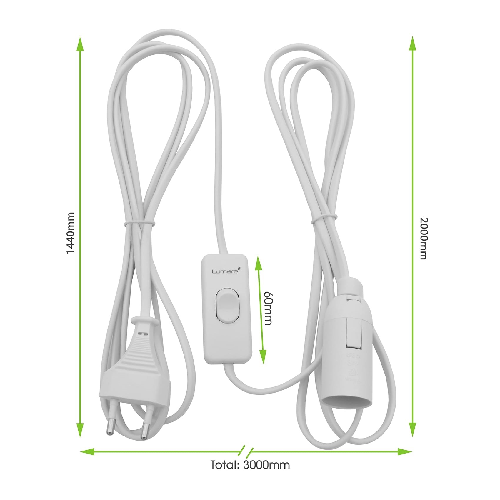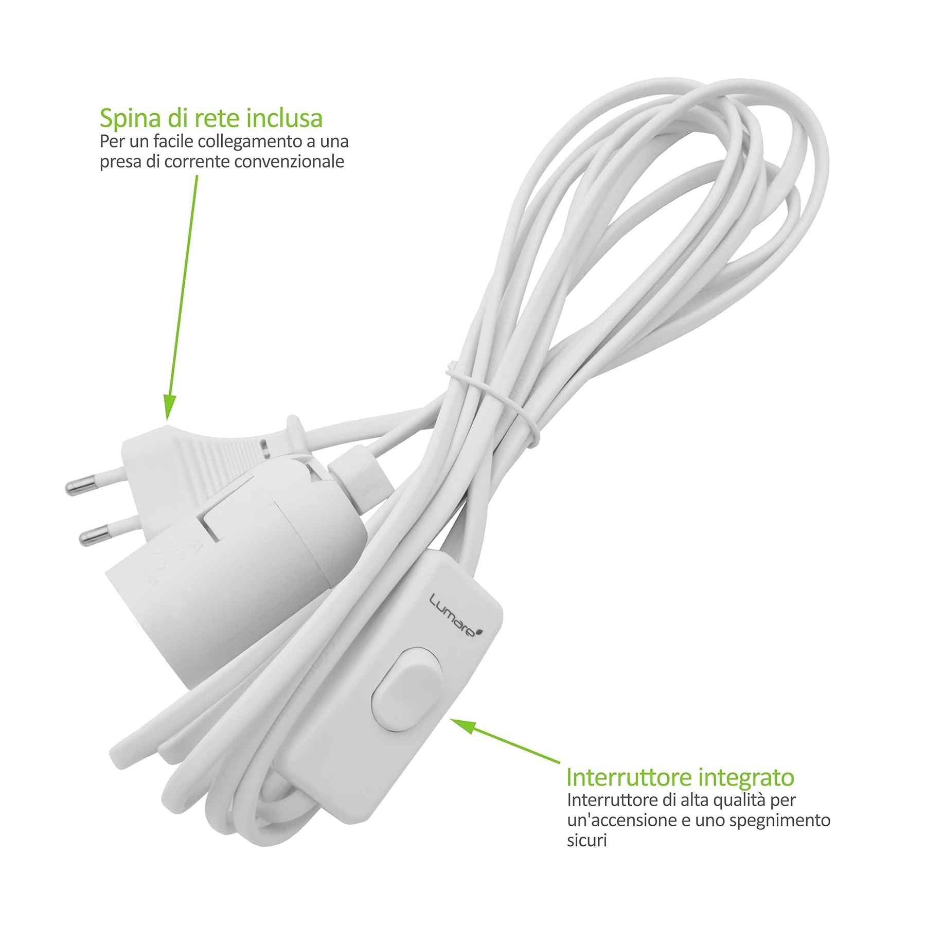 Attacco E27 già cablato con cavo da 3,5 metri.