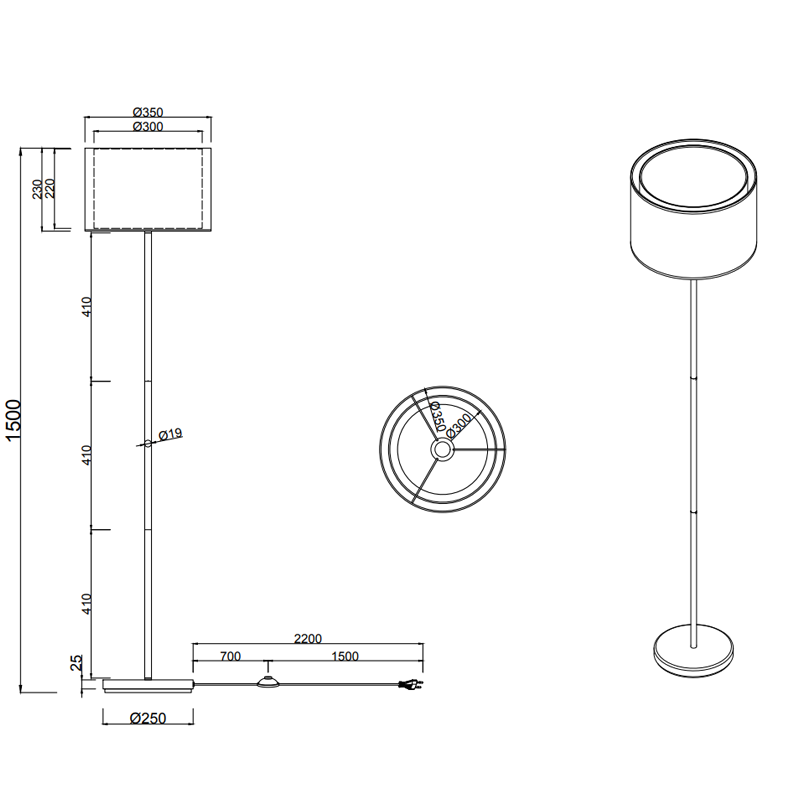 Questa piantana led moderna ha un’altezza di 150 cm. L’accensione avviene mediante il pedale a terra. La lampadina non è inclusa.