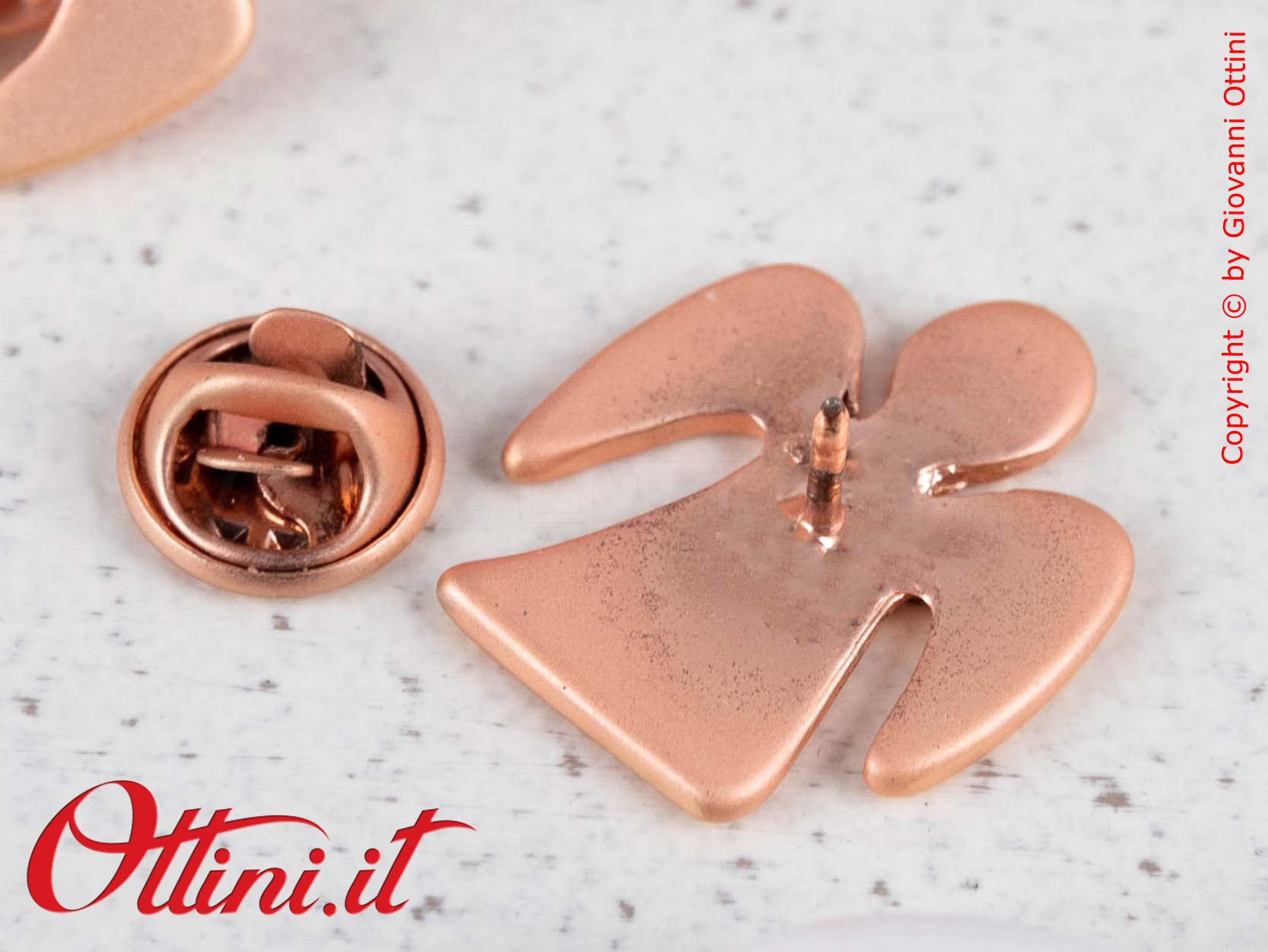Bellissimo pin con Angelo realizzato in lega di metallo con finitura color rame satinato. E’ un oggettino decorativo adatto alla personalizzazione di bomboniere e prodotti dedicati alle celebrazioni religiose, in particolare per i Battesimi, le Prime comunioni e le Cresime. Non si ossida e non cambia il colore.