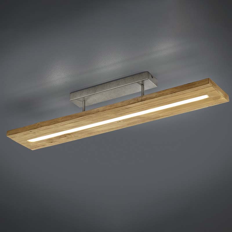 Il rettangolo in legno è attraversato da una striscia di luce che emette una luce chiara e omogenea. Questa plafoniera led moderna è perfetta per arredare qualsiasi ambiente in stile contemporaneo.