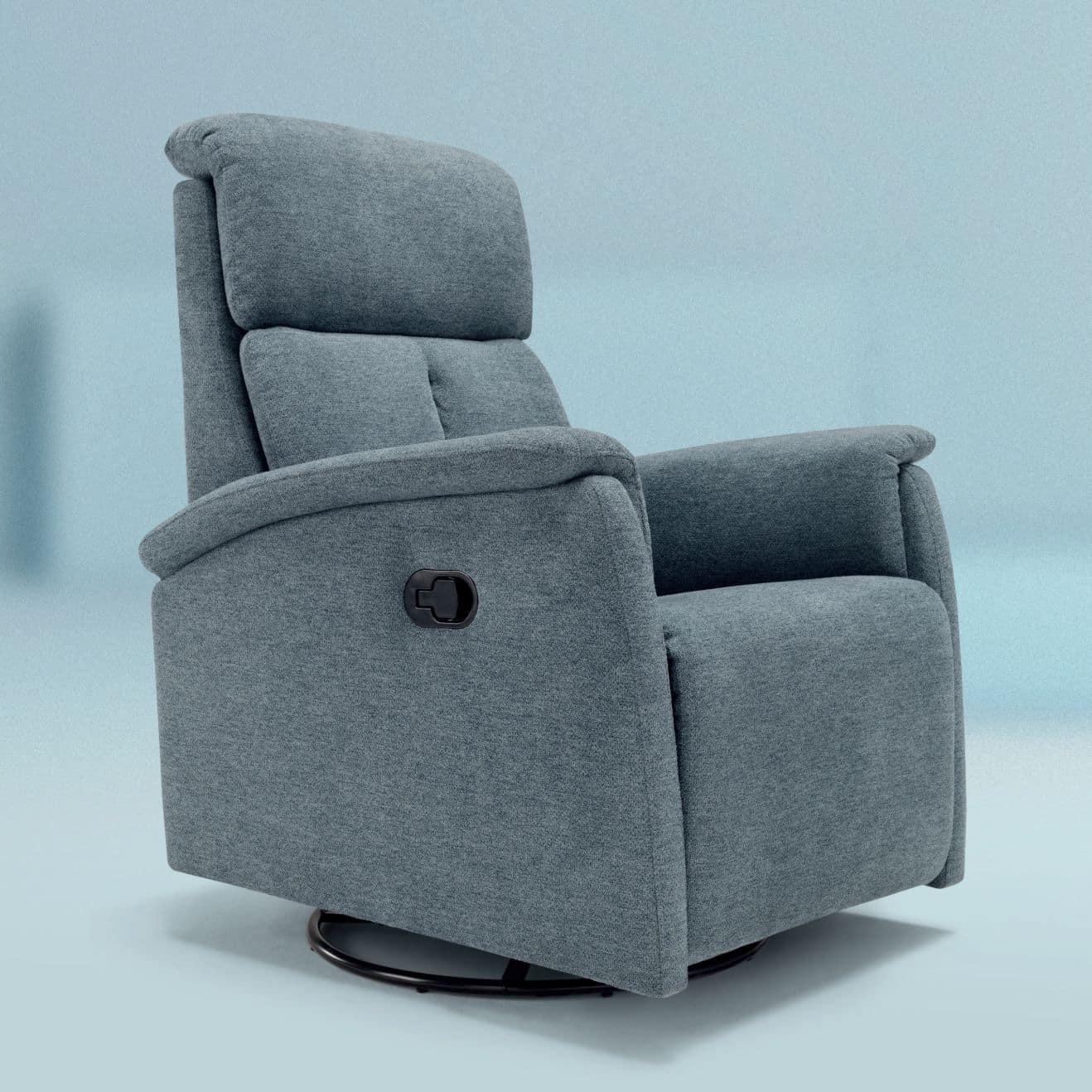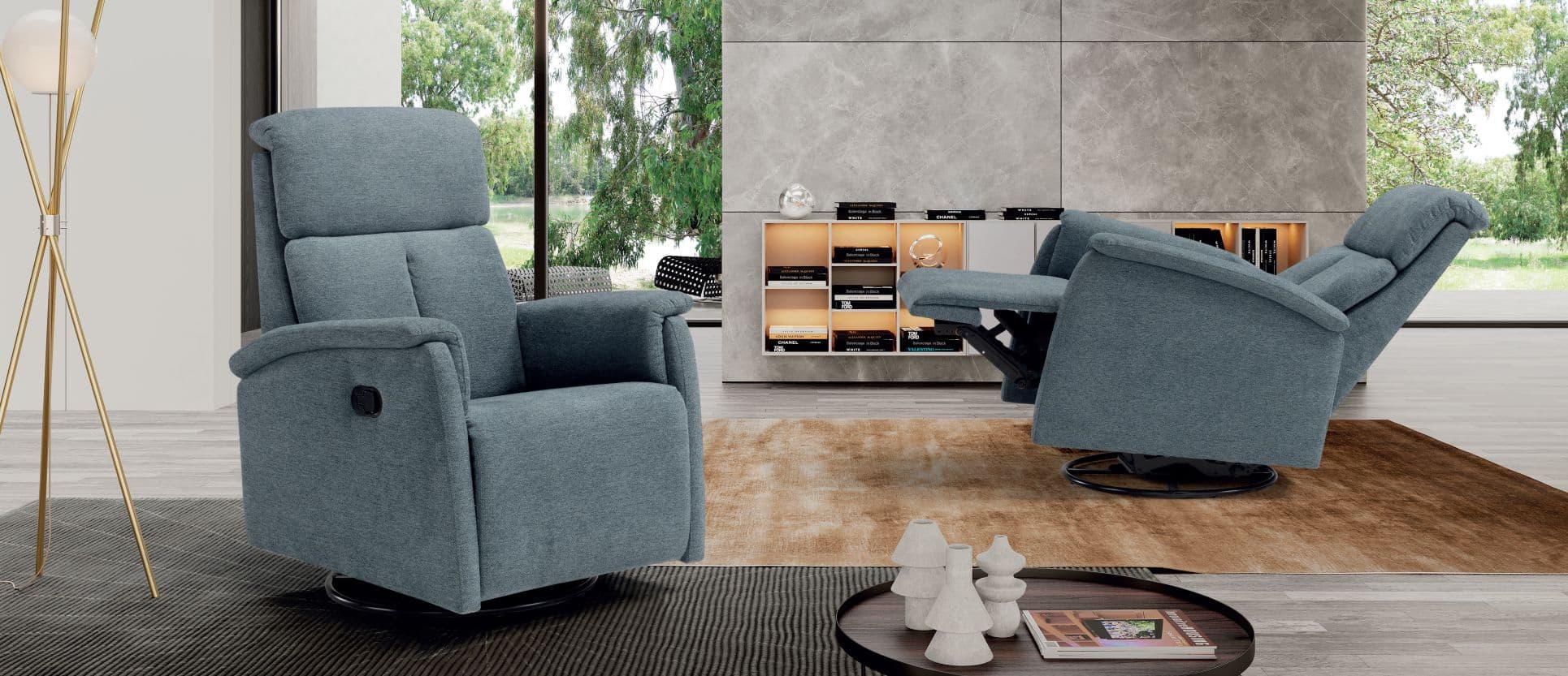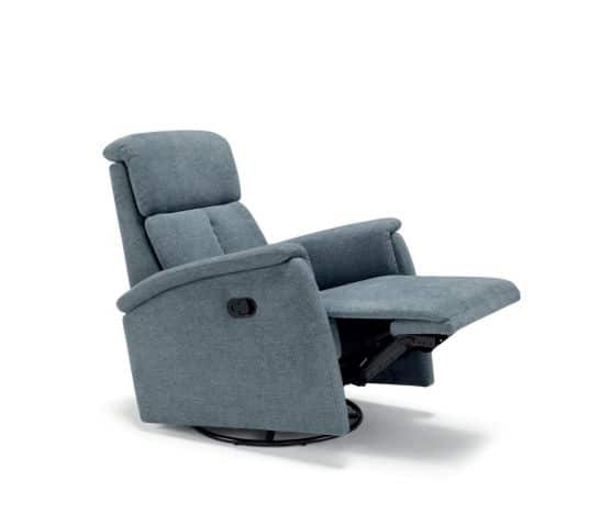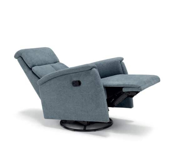 La poltrona William è una poltrona dondolo ideata per un concetto di comfort diverso dal solito. William è dotata, inoltre, di uno speciale meccanismo manuale che permette sia il sollevamento della pediera e sia l’apertura dello schienale per raggiungere una posizione di relax anche durante il dondolamento. La sua base tonda permette la rotazione a 360° sia con la poltrona in posizione standard che in posizione Total Relax.