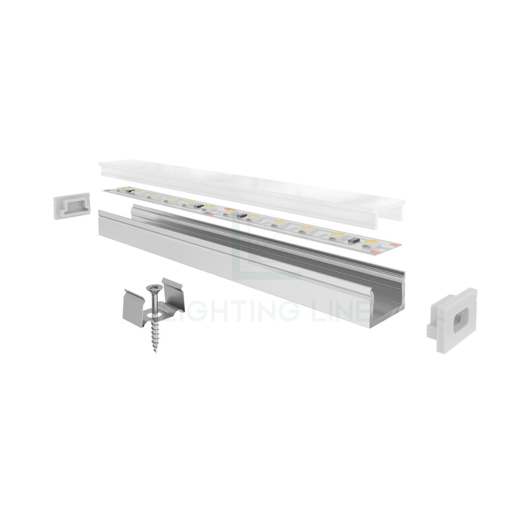 Attenzione: tappini, graffe e accessori non sono inclusi nel prezzo e si possono acquistare separatamente. La lunghezza dei profili e dei diffusori ha una tolleranza +/- 2 mm.