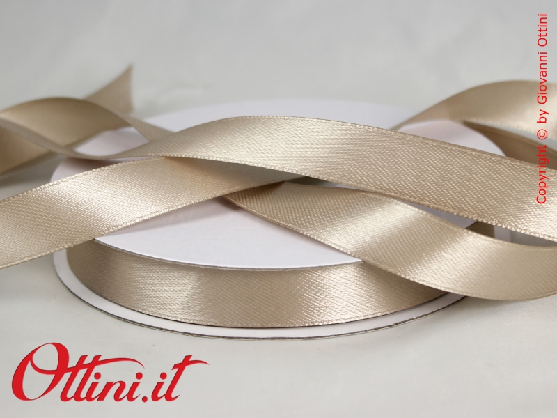 Rotolo da 50 mt di Nastro color Vaniglia in larghezza 15mm reali in Doppio Raso di altissima qualità.