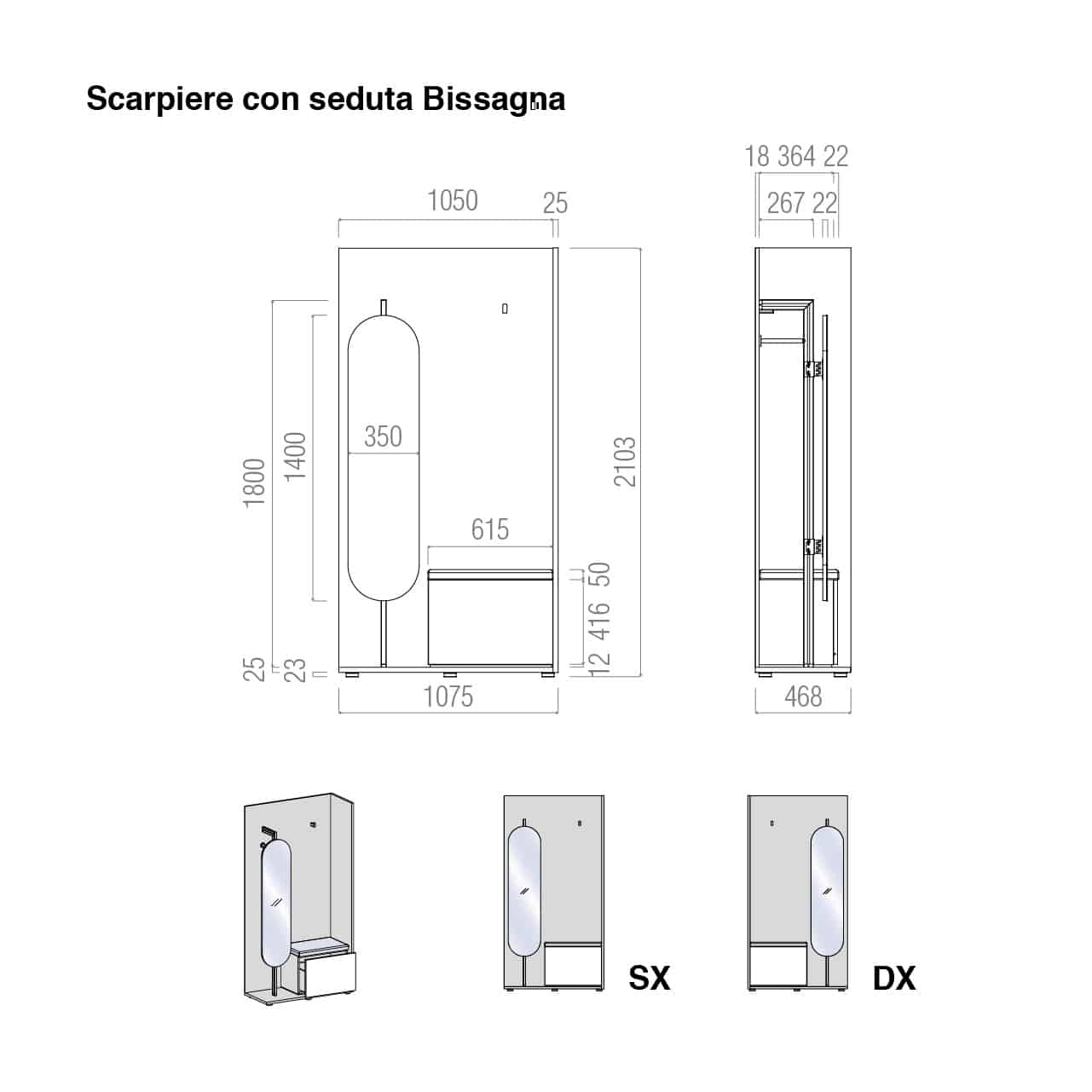 La scarpiera con seduta e cassettone Bissagna è una soluzione completa e salvaspazio per organizzare l’ingresso con stile. Questa struttura multifunzionale è dotata di un ampio cassettone che funge da seduta comoda e capiente scarpiera, perfetta per riporre calzature in modo discreto. La colonna con specchio integrato aggiunge praticità e luminosità, ideale per un controllo veloce prima di uscire. Inoltre, l’appendiabiti integrato consente di mantenere giacche e accessori sempre in ordine. Il design raffinato della composizione Bissagna si adatta sia agli ambienti moderni che classici, rendendo l’ingresso accogliente e funzionale. Grazie alla combinazione di eleganza e praticità, questo mobile è la scelta ideale per chi desidera ottimizzare lo spazio senza rinunciare allo stile.
