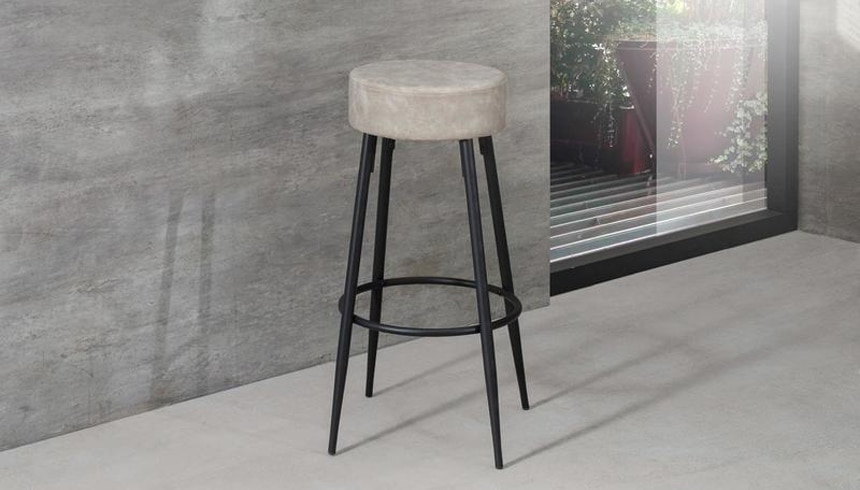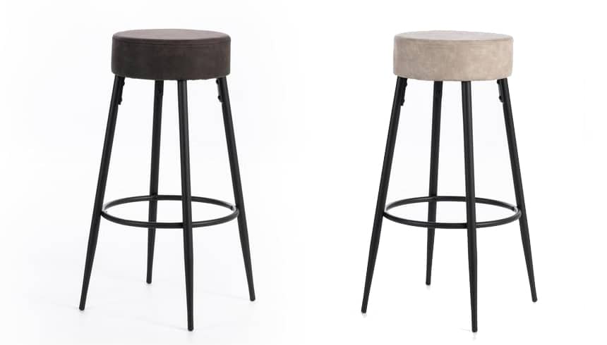Sgabello Gregory rivestito in microfibra imbottita. Tipico sgabello da bar americano, per una bevuta in compagnia.