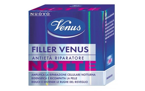 Venus Viso Filler Crema Antieta’ Riparatore Notte 50 Ml: Il trattamento antietà riparatore studiato per agire in sinergia con i bioritmi notturni della pelle. La formula esclusiva, con Microinfusioni di Acido Ialuronico e Omega3, svolge un’intensa azione filler rimodellante Amplifica il naturale processo di riparazione cellulare notturno. Ridensifica i tessuti con le Microinfusioni di Acido Ialuronico che agiscono con un intenso effetto filler. Riduce e distende le rughe del risveglio e in particolare le pieghe che si formano sul viso durante la notte. Ricompatta e rassoda i contorni del viso, rimodella l’ovale. Notte dopo notte, la pelle si ripara in profondità, è più liscia, più compatta, visibilmente più riposata e più giovane